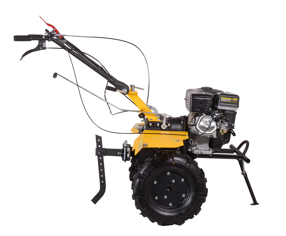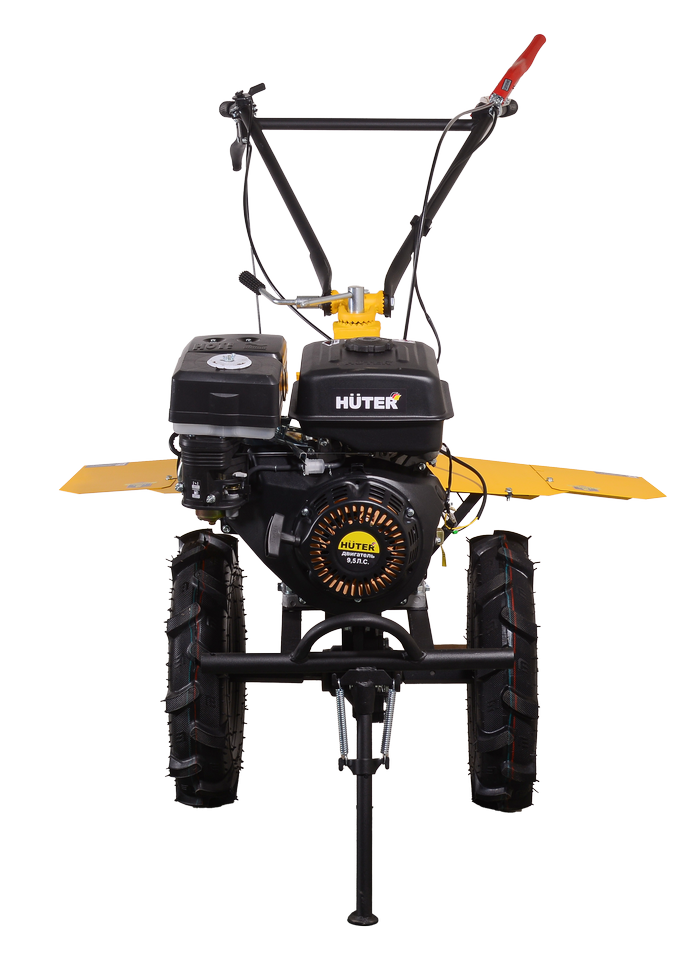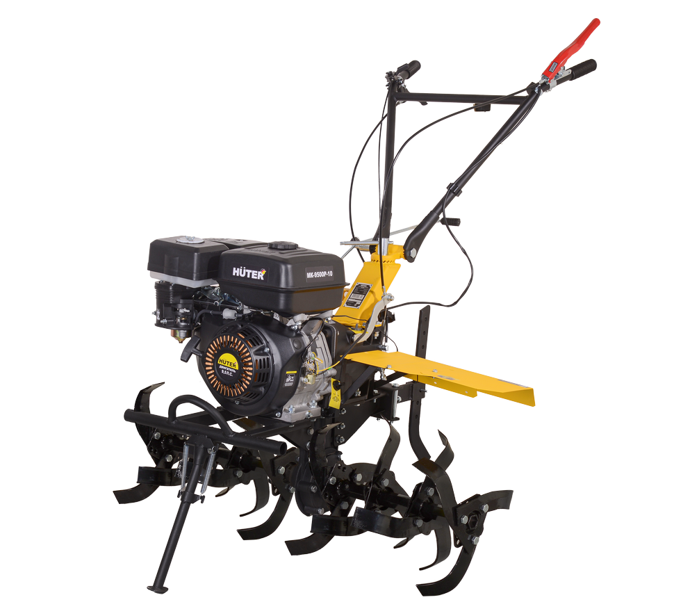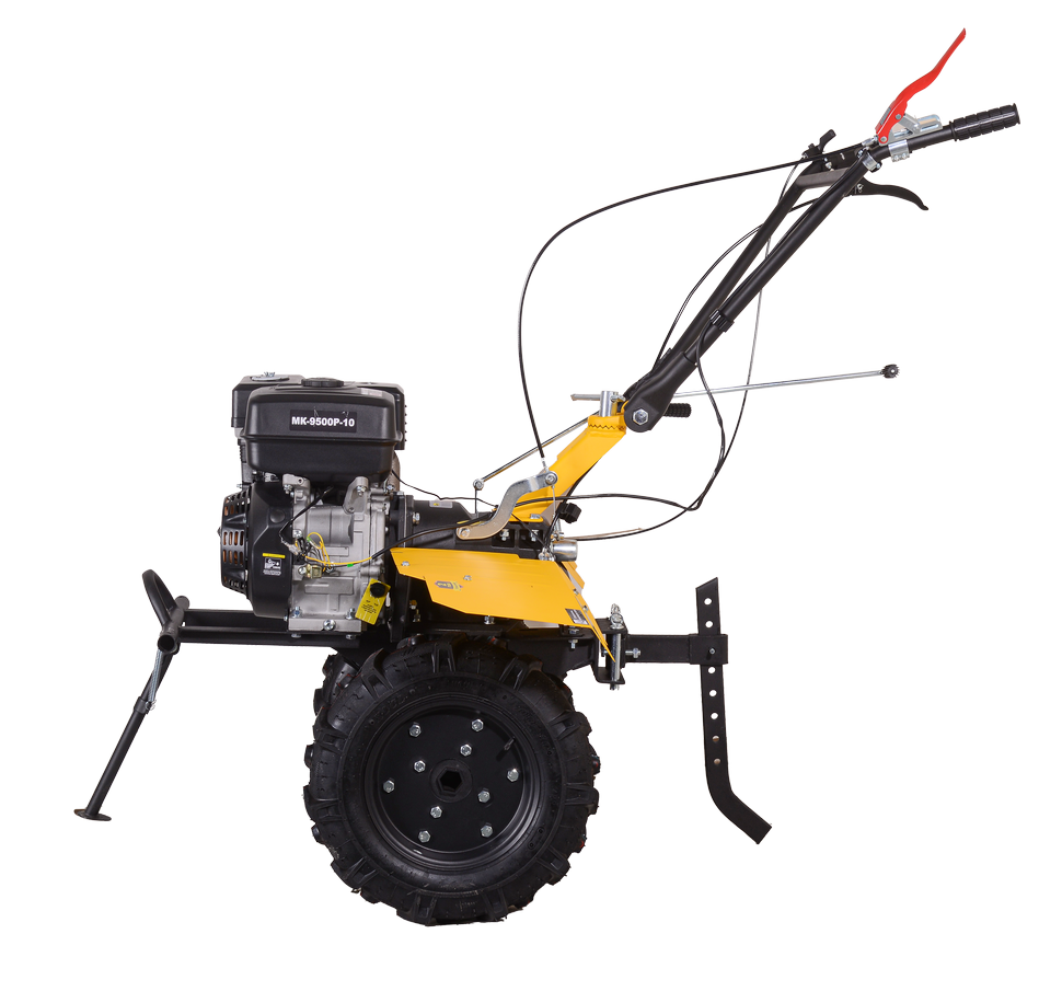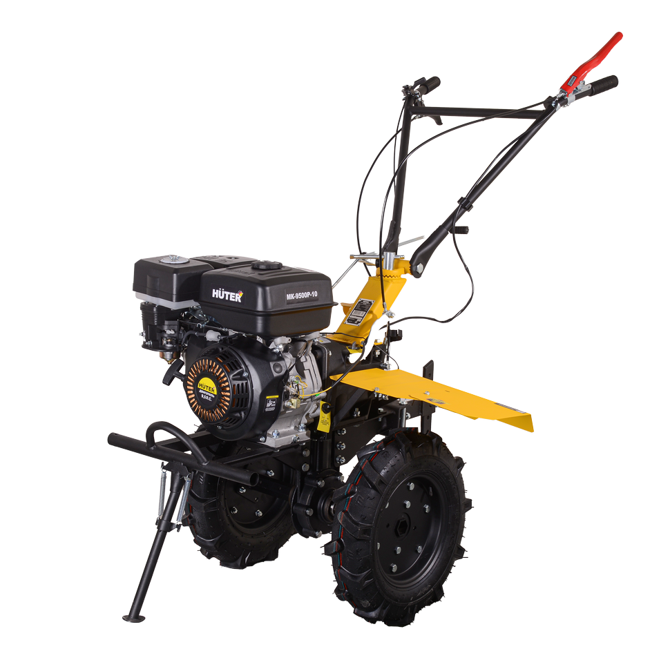 HUTER MK-9500P-10 - это модификация MK-9500P, которая отличается от базовой версии колесами увеличенного диаметра. Мотоблок приводится в действие бензиновым четырехтактным двигателем мощностью 9,5 л. с. Две передачи вперед и одна назад. Машина легко справляется с обработкой разных типов грунтов, в том числе тяжелых почв, подходит для вспахивания целины.