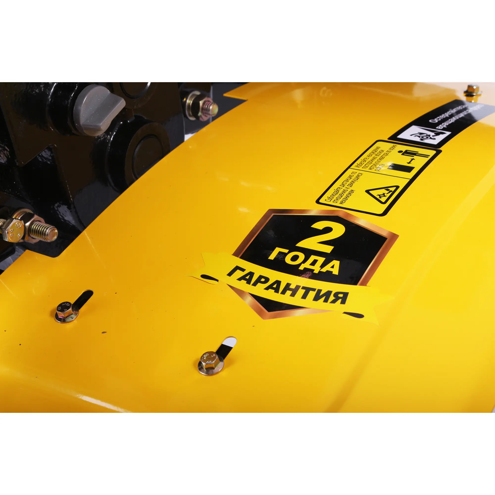 Широкие защитные крылья защитят от выскакивающих из-под фрез комьев земли. Глубокий протектор на колесах позволяет перемещать машину по рыхлым грунтам без боязни увязнуть.