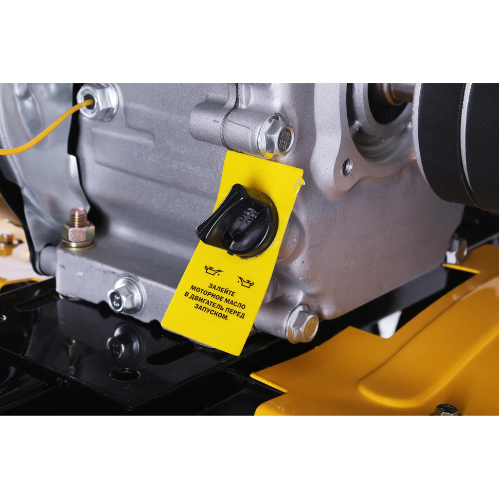 Мотоблок оснащен 4-х тактным бензиновым двигателем мощностью 7.5 л.с., шестеренчато-цепным редуктором в чугунном корпусе и ременным типом привода, позволяющим установить навесное оборудование. Воздухофильтр с масляной ванной надежно защищает мотор от попадания пыли. Емкостью топливного бака 3.6 л, расход топлива 375 гр/кВт в час.