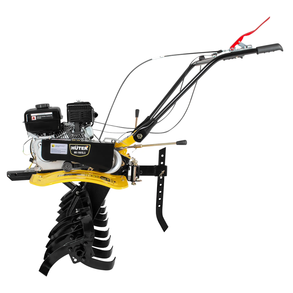Отличительная особенность модели HUTER МК-100/SLS - большие колеса 19x7-8, которые не дадут машине увязнуть в грунте.