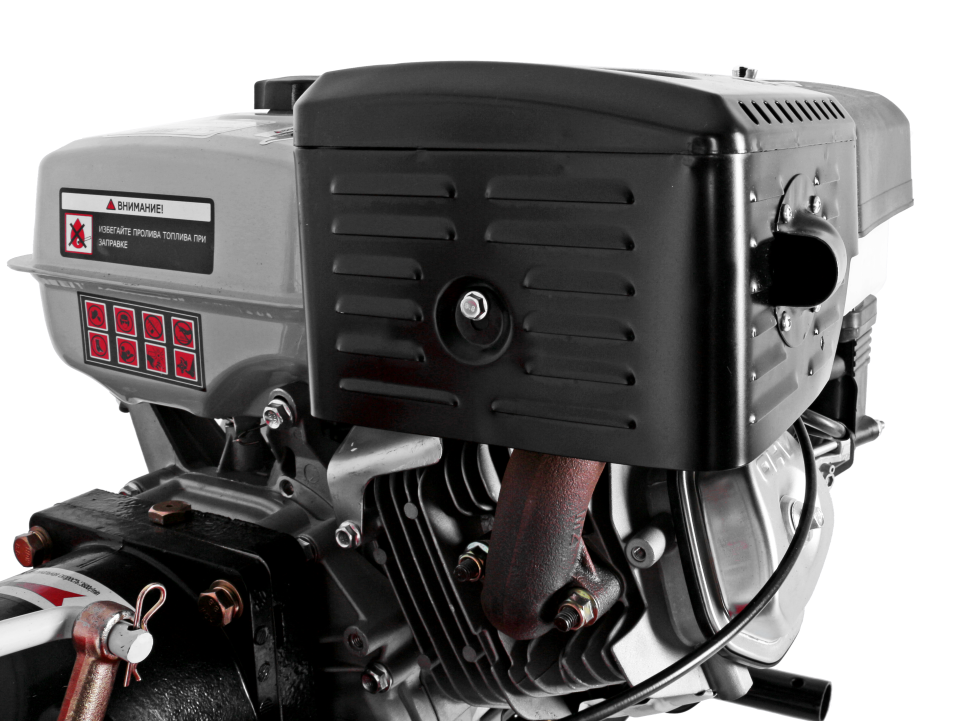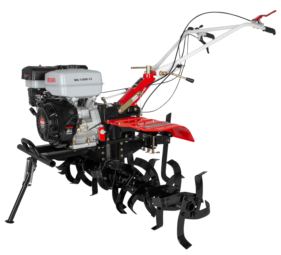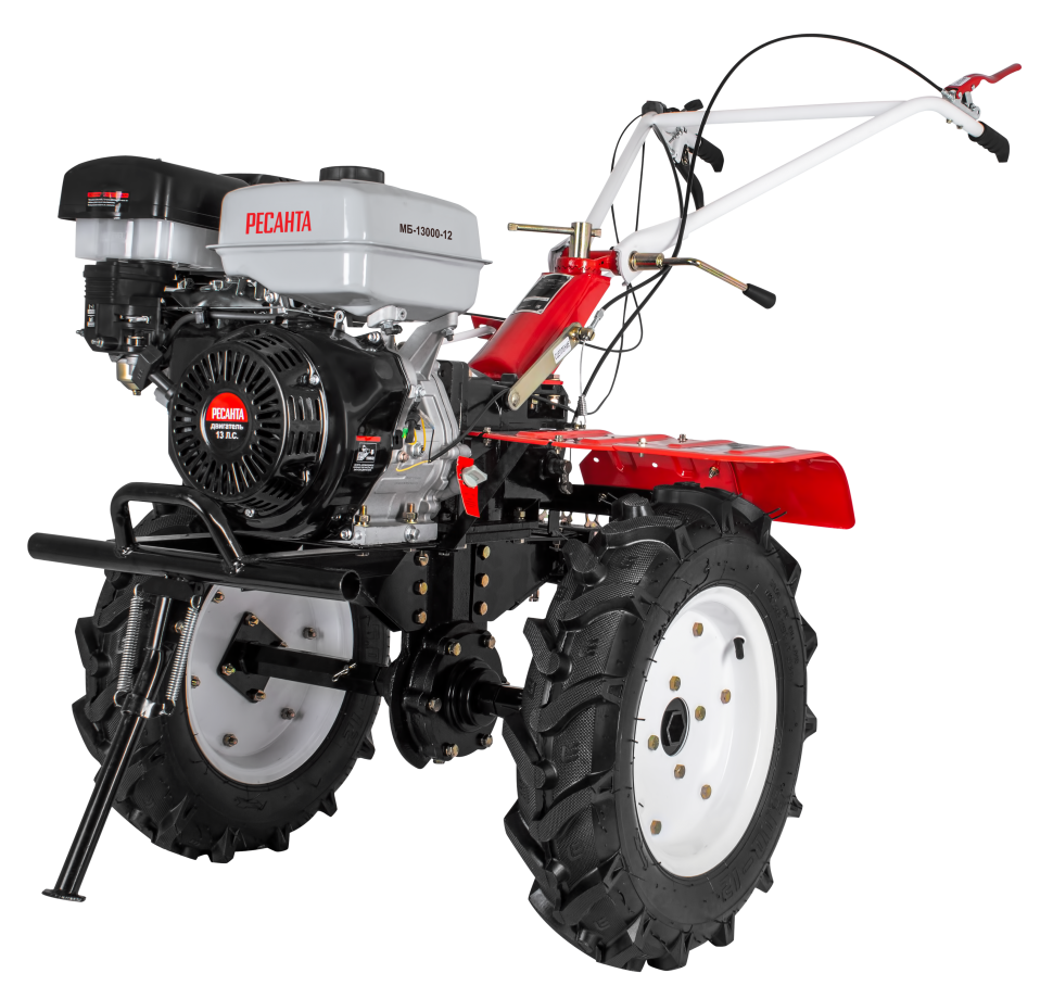 Сельскохозяйственная машина данной модели имеет привод для подключения активного навесного оборудования ВОМ 18 мм. Длительную и бесперебойную работу двигателя обеспечивает хромированная поршневая группа. Мотор МБ-13000Р Ресанты оснащен автоматическим регулятором частоты вращения, что значительно упрощает работу оператора.