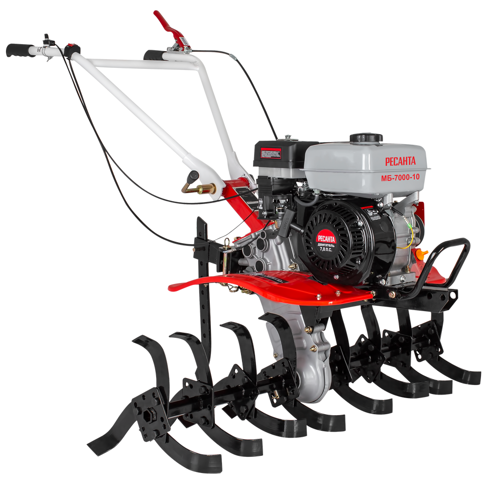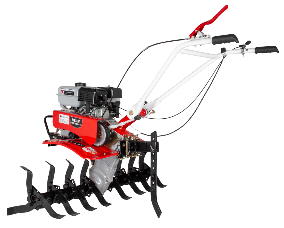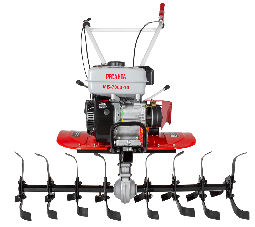 Мотоблок МБ-7000P-10 Ресанта – это надежный и многофункциональный помощник в обработке почв и выполнении других работ. За высокую производительность отвечает 4-тактный двигатель 7 л. с. Надежность и длительная работа бензинового мотора обусловлена хромированной поршневой группой.