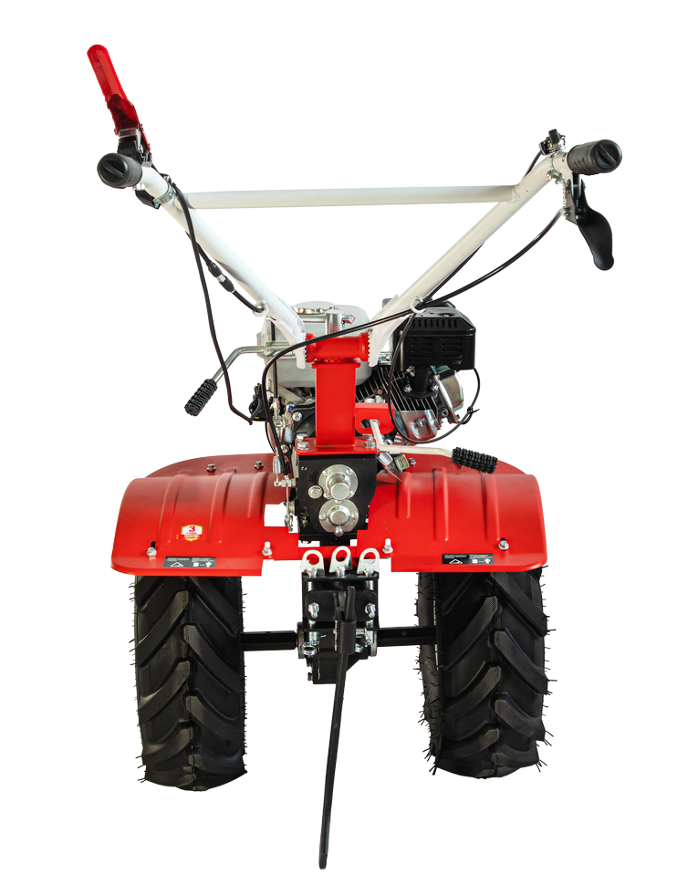 Большие колеса 19х7-8 с агрессивным протектором позволяют легко и быстро перемещать любые грузы по участку.