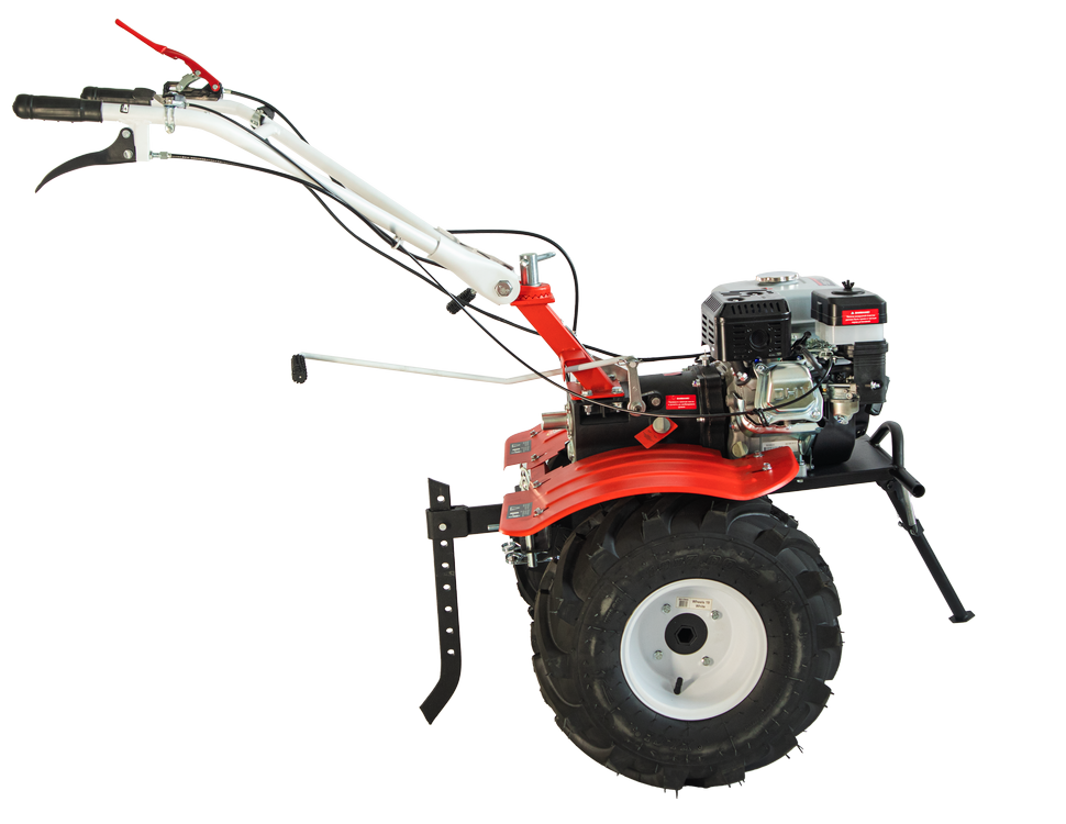 Четырехтактный одноцилиндровый двигатель 8,0 л.с. работает от бензина с октановым числом не ниже 92. Топливный бак вмещает 3,6 л бензина, расход топлива составляет 375 гр/кВт в час. Передачу крутящего момента выполняет шестеренчатый редуктор в масляной ванне. Она минимизирует потери на трение и снижает износ контактирующих поверхностей. Воздушный фильтр также погружен в масляную ванну – это позволяет эксплуатировать мотоблок в условиях повышенной запыленности.