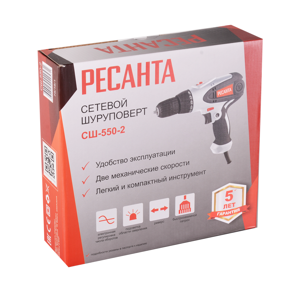 Модель сетевого шуроповёрта РЕСАНТА СШ-550-2 имеет обрезиненную ручку удобной формы, поэтому при работе обеспечен надёжный хват и отсутствует проскальзывание. Сам корпус хорошо сбалансирован и не даёт перевеса. Мощность РЕСАНТА СШ-550-2 – 550 Вт. Частота вращения – до 1500 об/мин. Питание – от бытовой сети 220В, 50Гц.