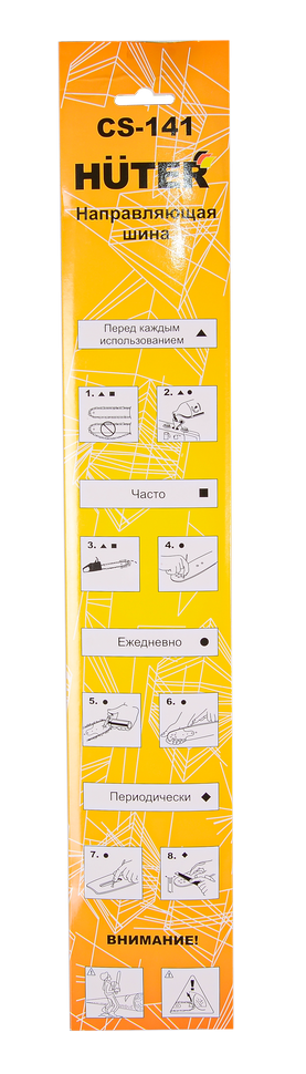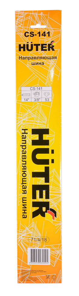 Шина Huter CS-141 длиной 35 см, расcчитана на цепь с толщиной звена 1,3 мм и 53 звеньями. Подходит для электропил Huter ELS-1800P, Ресанта ЭП-1814П и бензопилы Huter BS-4514.