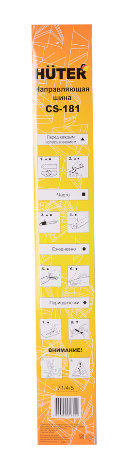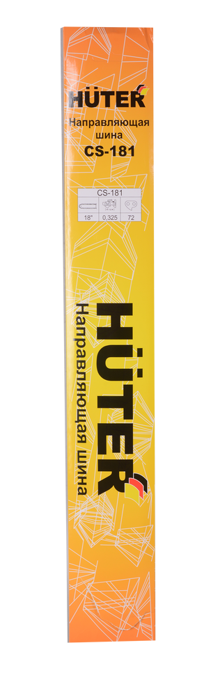 Шина Huter CS-181 длиной 45 см рассчитана на цепь с толщиной звена 1,5 мм и 72 звеньями. Подходит для бензопил: