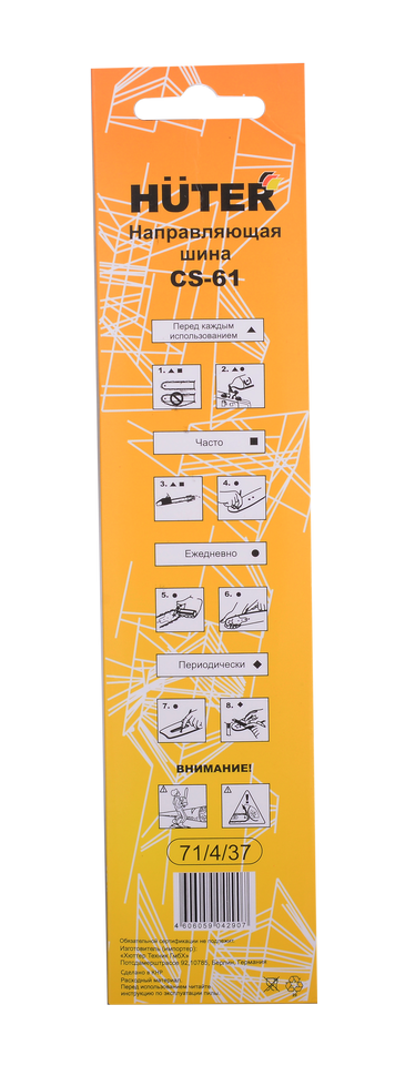 Шина CS-61 Huter длиной 15,2 см. Рассчитана на цепь с толщиной звена 1/4", количество звеньев в цепи: 36. Подходит для моделей аккумуляторных пил: