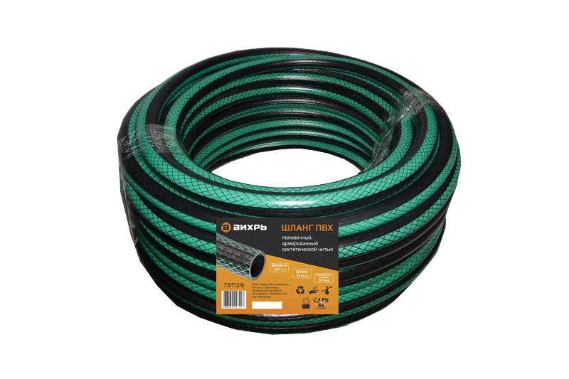 Шланг Вихрь поливочный ПВХ, 3/4 дюймов, 15м обеспечит полив растений в саду, огороде или на приусадебном участке.