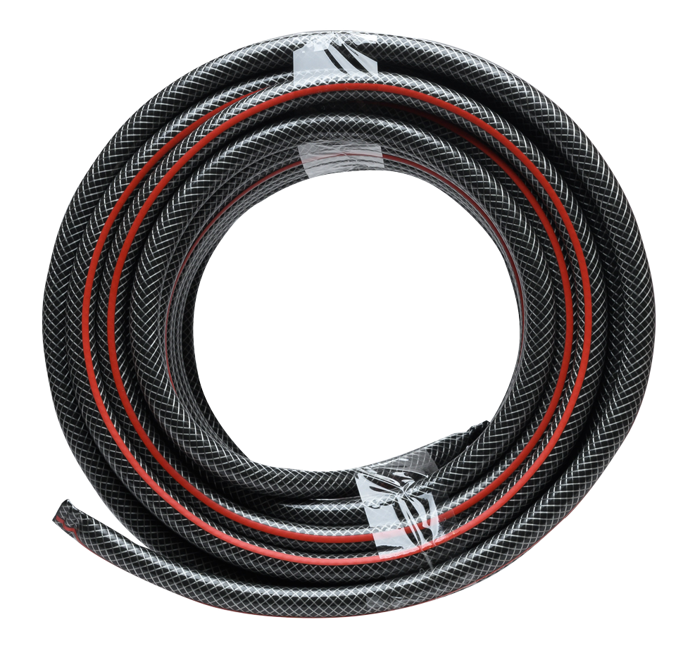- Трехслойный армированный: шланг имеет трехслойную конструкцию с армированием синтетической нитью, что придает ему прочность, устойчивость к изгибам. Шланг хорошо держит форму, не перекручивается.