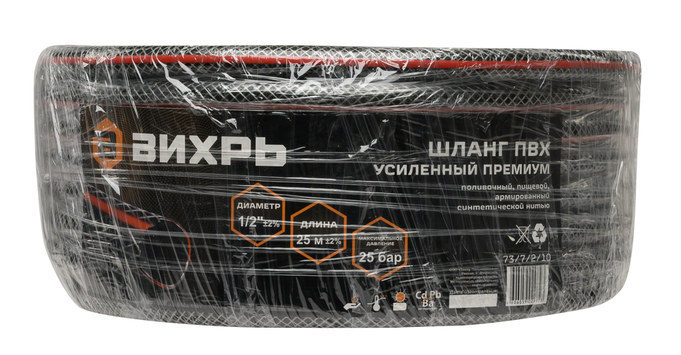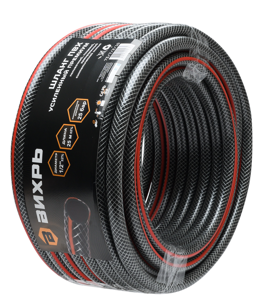 Шланг Вихрь поливочный премиум, 1/2 дюймов, 25м - это надежный и удобный инструмент для организации полива на вашем участке.
