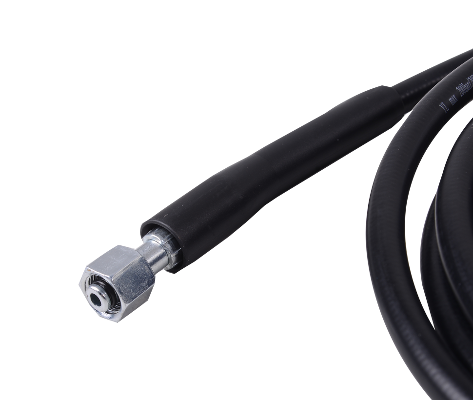 Длина шланга 8 м, что позволяет увеличить радиус действия мойки и не передвигать моечный аппарат по участку. Изготовлен из качественной резины в текстильной оплетке, не переламывается. Максимальная температура воды 50°.