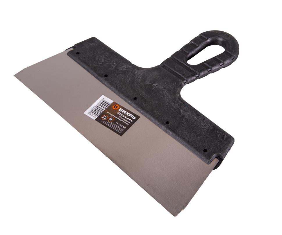 Шпатель ВИХРЬ 250 мм – это незаменимый инструмент для ремонта и отделки. Он изготовлен из нержавеющей стали, что обеспечивает защиту от коррозии. Длина рабочей части составляет 25 см. Рукоятка шпателя выполнена из пластика, имеет изогнутую форму для удобства хвата.