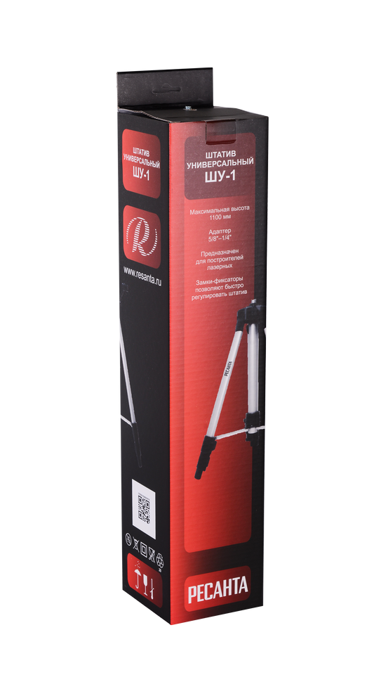 Универсальный штатив Ресанта ШУ-1 для установки лазерного построителя плоскостей. Телескопические ножки позволяют изменять высоту до нужного уровня от 60 до 110 см. Крепление головки к штативу: 5/8" и 1/4". Штатив изготовлен из алюминия и имеет небольшой вес, что позволяет легко передвигать его с места на место.