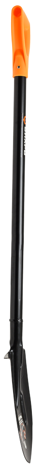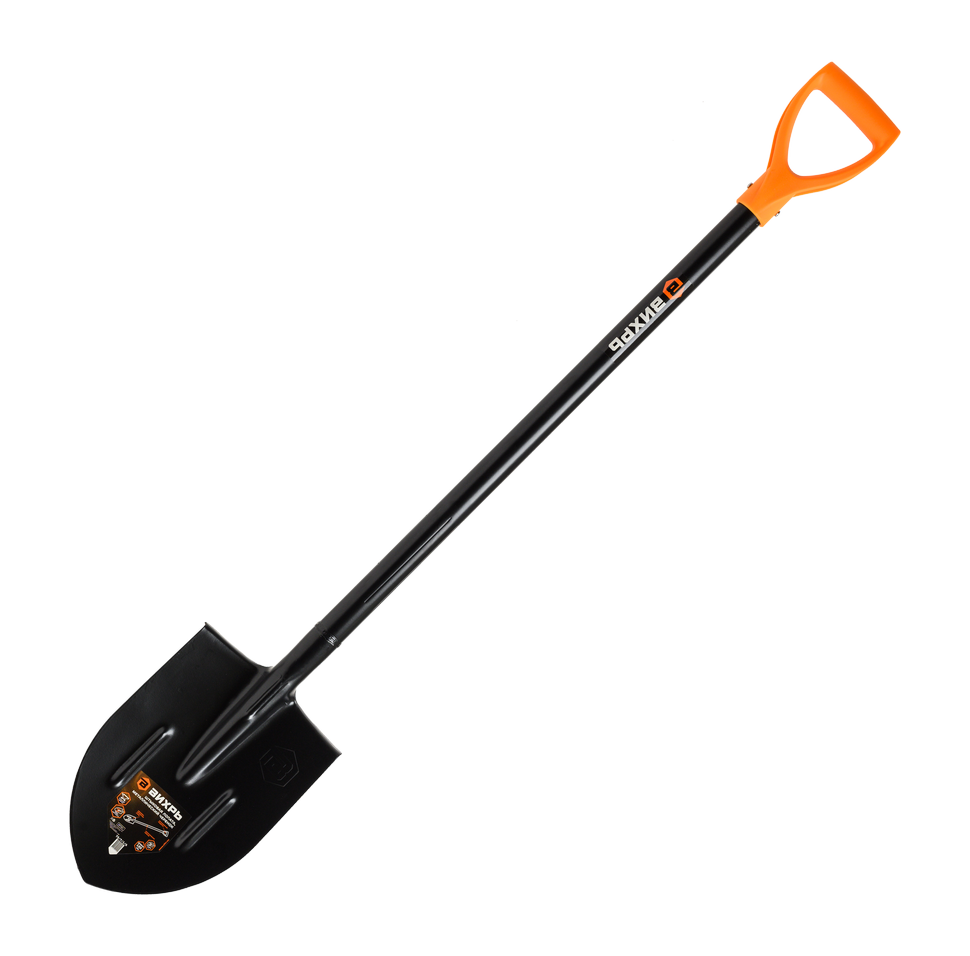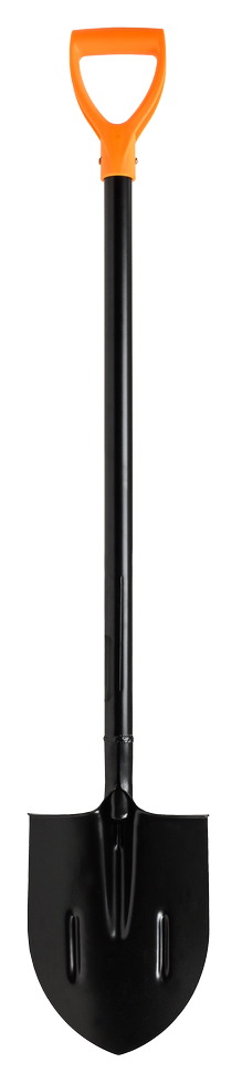Металлический черенок круглого сечения обладает высокой прочностью и надежностью, сварное соединение лопаты и лезвия делает инструмент долговечным и устойчивым к нагрузкам.