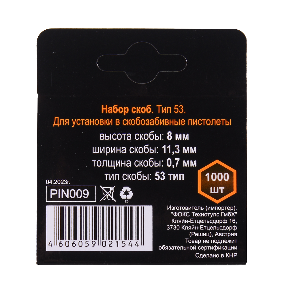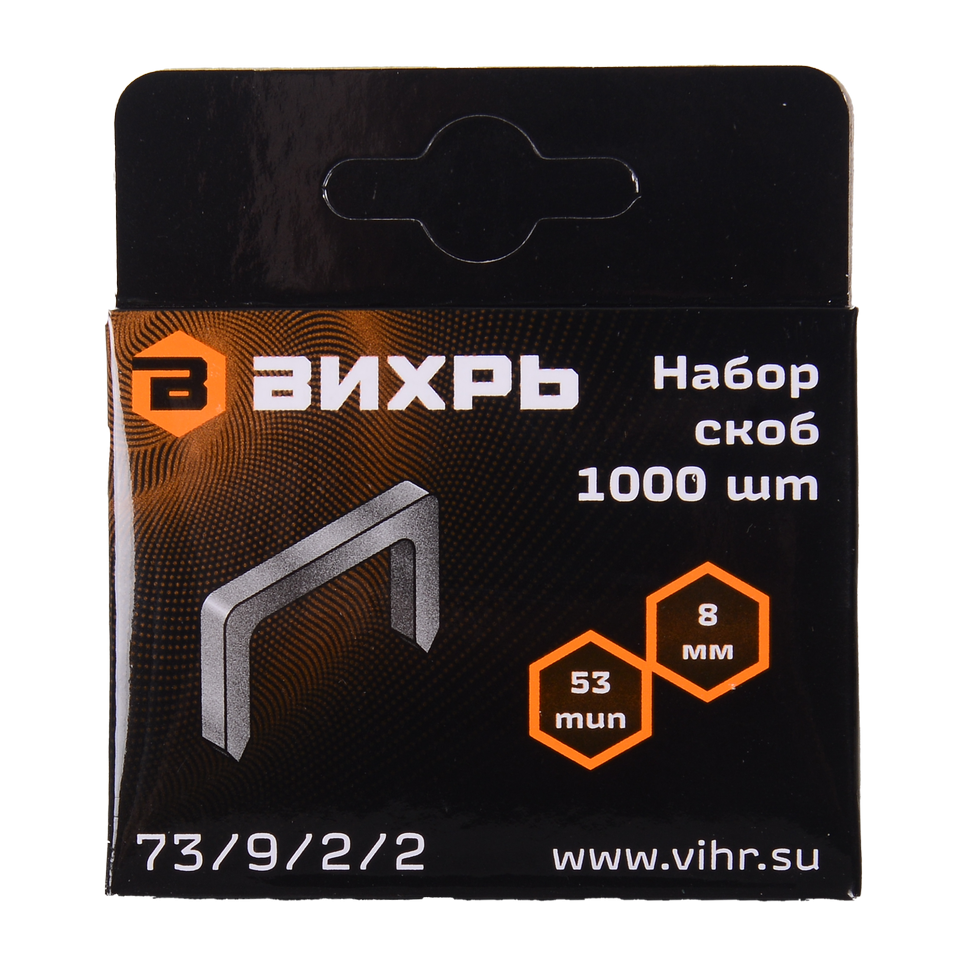 Скобы имеют специальную форму, которая обеспечивает надежное крепление материалов и выдерживает высокие механические нагрузки. Скобы имеют тип 53 и подходят для использования с различными типами мебельных степлеров, в том числе для мебельного степлера Вихрь.