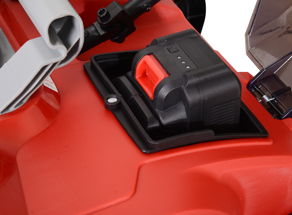 Два съёмных литий-ионных аккумулятора напряжением 40 В каждый обеспечивают высокую мощность устройства. Каждая батарея имеет ёмкость 4 Ач, обеспечивая длительную работу без подзарядки. Малошумная работа двигателя практически не мешает окружающим людям и животным.