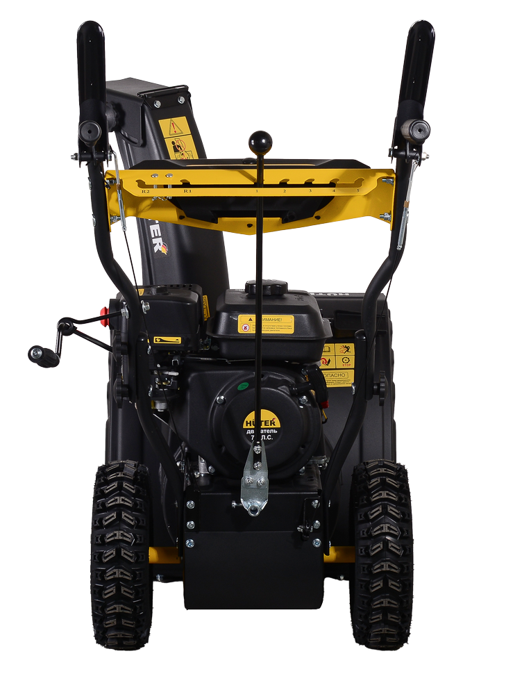 Самоходная модель весом 71 кг не требует усилий со стороны оператора. Наличие 5 передних и 2 задних скоростей обеспечивает маневренность на ограниченной территории. Ковш шириной 56 см и высотой 54 см способен захватывать высокий слой снега. Благодаря металлическим башмакам он защищен от механических повреждений, не портит тротуарное покрытие. Шнек выполнен из прочной стали, имеет форму спирали. Зубчатые лопасти эффективно измельчают подтаявший, слежавшийся снег и лед.
