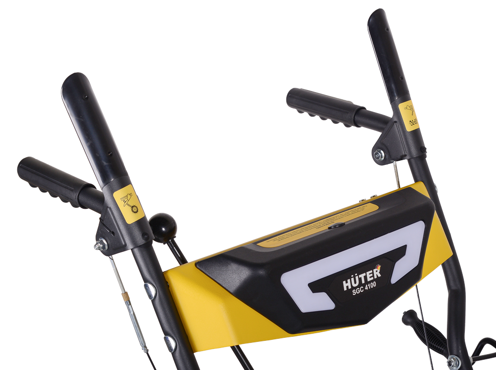 Снегоуборщик HUTER SGC 4100 прост в управлении. Все элементы находятся на панели оператора. Желоб для выброса снега с помощью специального рычага поворачивается на 190° в процессе работы. Максимальная дальность выброса составляет 15 м. Широкие колеса имеют глубокий протектор, обеспечивают надежное сцепление с поверхностью, не пробуксовывают на льду и в рыхлом снегу.