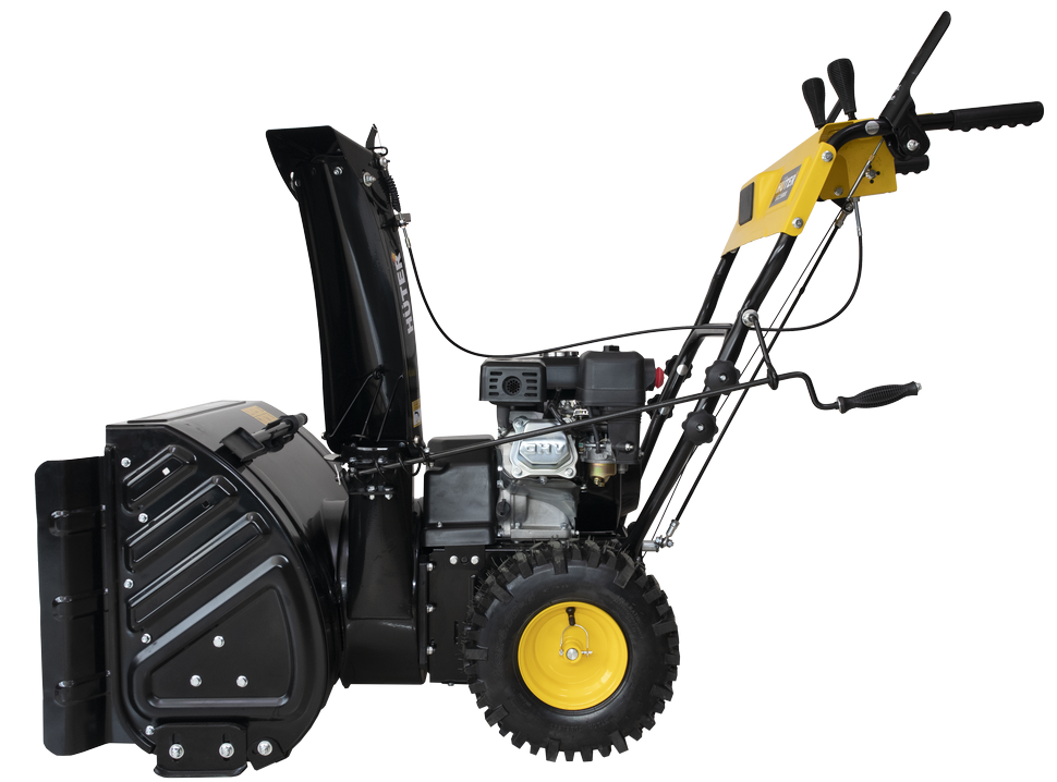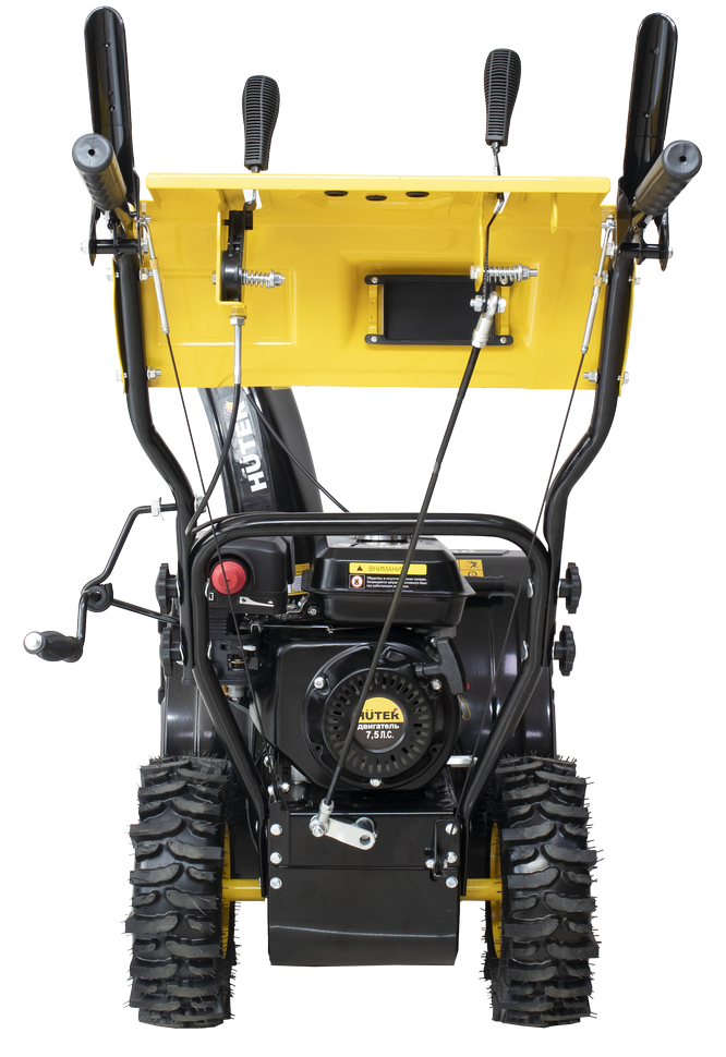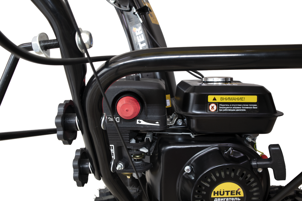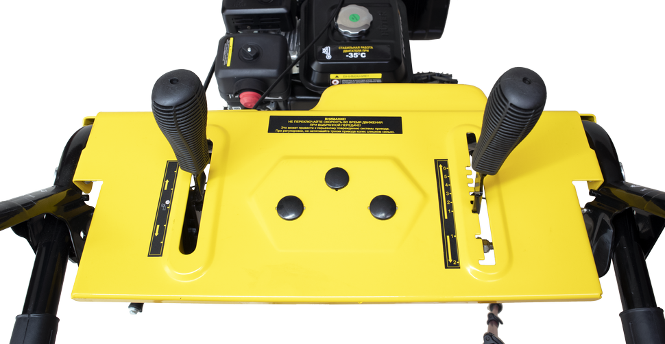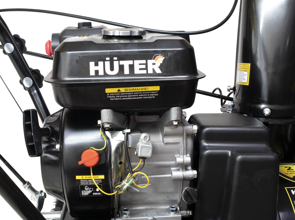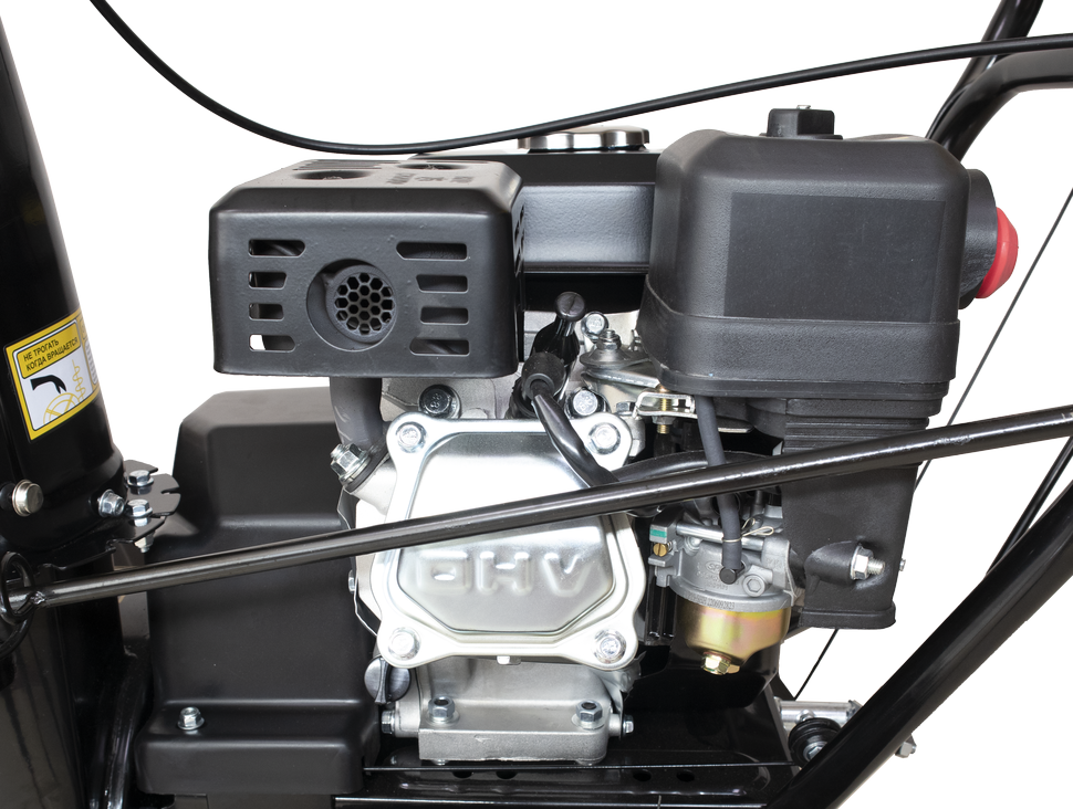 Двухступенчатая система шнек+вентилятор эффективно измельчает слежавшийся снег с ледяной коркой. В зависимости от особенностей снежного покрова можно выбрать одну из 6 передних и 2 задних скоростей. В качестве топлива для снегоуборочной машины используется бензин АИ-92. Бак объемом 3,6 л обеспечивает длительность непрерывной работы без дозаправки. Запуск двигателя осуществляется с помощью ручного стартера.