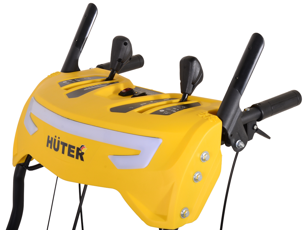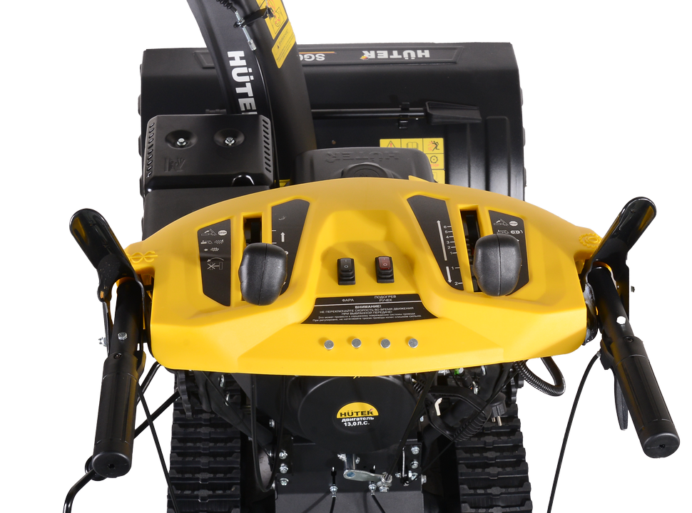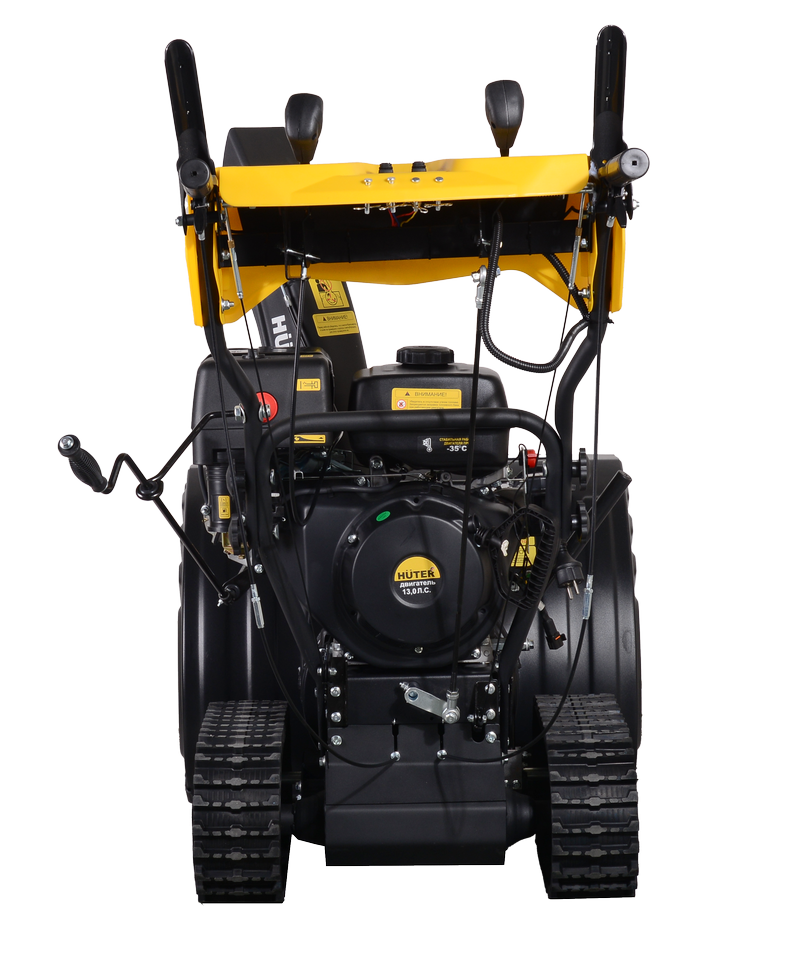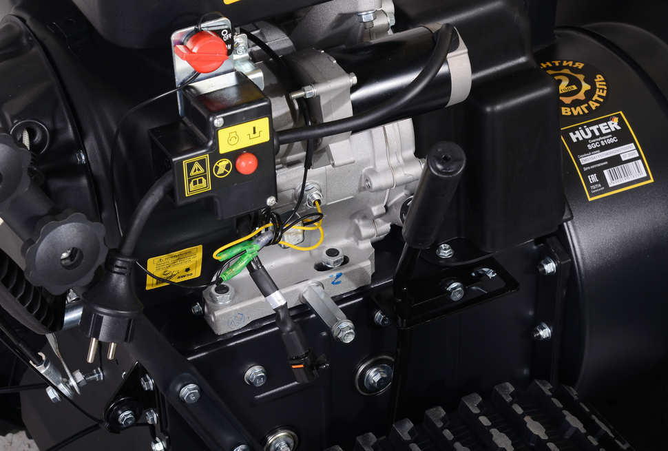 Механизмы приводятся в действие бензиновым двигателем, мощностью 13 л.с., что даёт возможность работать в самых сложных погодных условиях. С помощью электростартера от сети 220 В можно легко запускать спецтехнику. Машина оборудована прочными металлическими лопастями, способными справиться с большими снежными заносами и примёрзшими кусками льда. В зависимости от условий эксплуатации, шнеки устанавливаются на нужную высоту. Наличие фар облегчает уборку в тёмное время суток и при обильных осадках. Эргономичная рукоятка обеспечивает комфорт при работе, благодаря лёгкости управления и функции подогрева. При срабатывании экстренного тормоза предусмотрена автоматическая остановка двигателя.