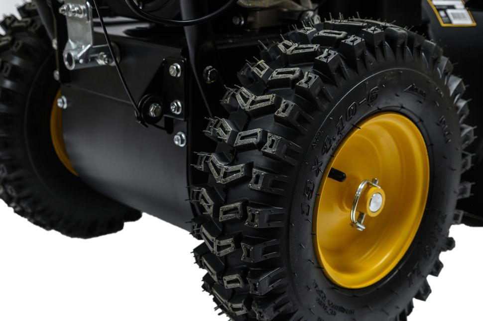 Модель SGC 56/54-5/2B имеет 5 скоростей вперед и 2 назад. Снегоуборщик хорошо справляется со снегом любой плотности, т.к. шнек выполнен из прочного металла. Колёса оснащены глубоким протектором, поэтому не скользят на гололеде. Есть функция регулировки направления снега, которая позволит контролировать его выброс.
