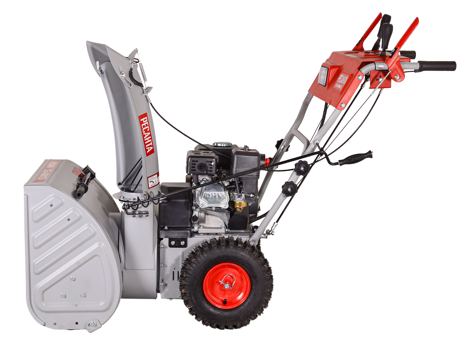 - Регулировать высоту и направление выброса снега можно с помощью специальной рукоятки практически на ходу.