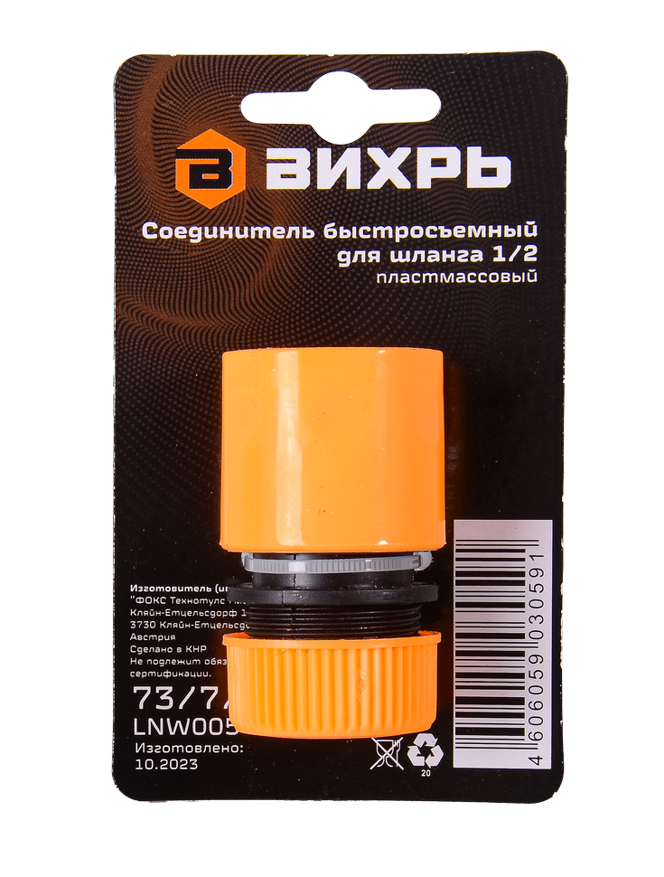 Соединитель быстросъемный для шланга 1/2 Вихрь позволяет легко и быстро соединять шланги диаметром 1/2". Может использоваться для последовательного наращивания длины шлангов. Соединитель изготовлен из пластмассы, что обеспечивает ему долгий срок службы и коррозийную стойкость.