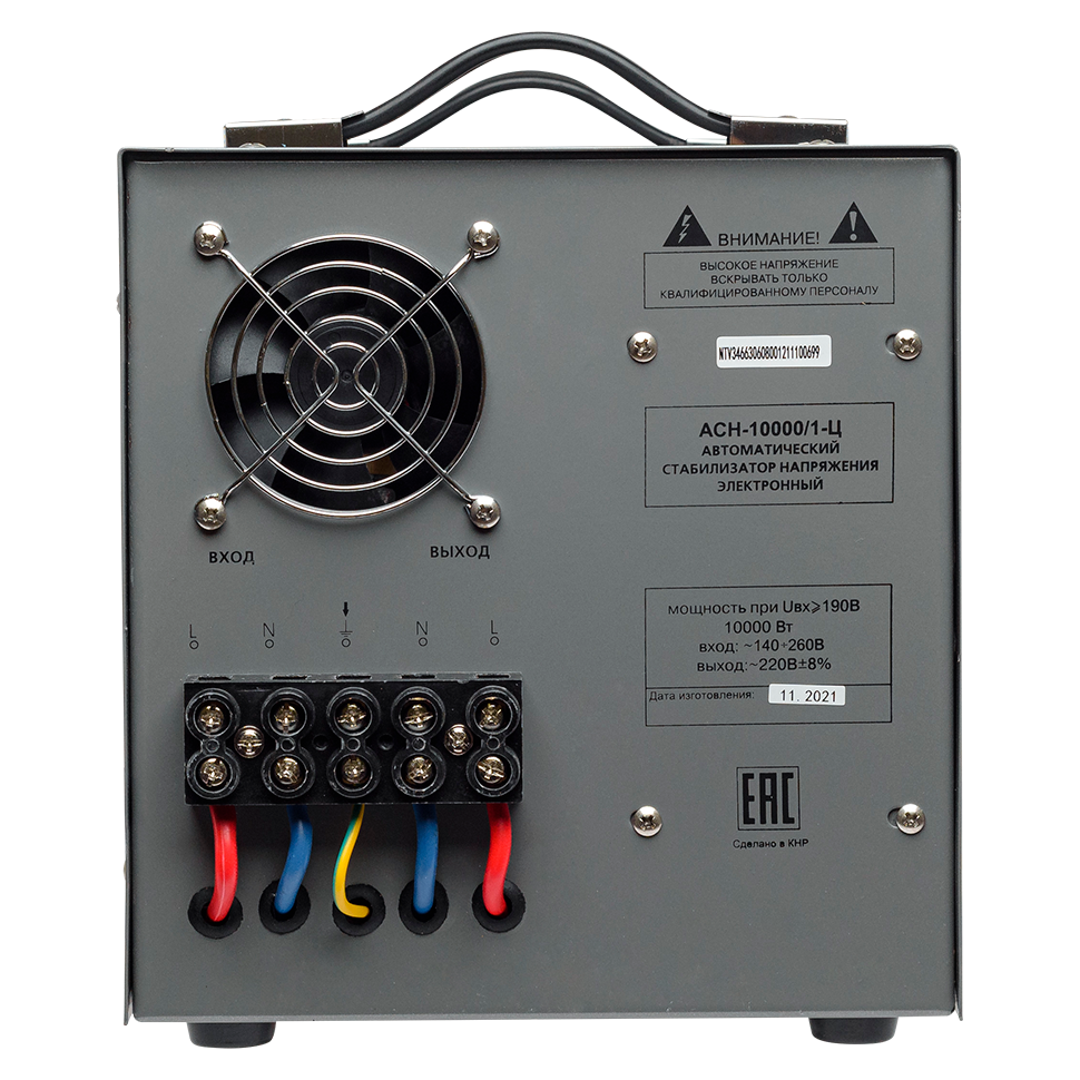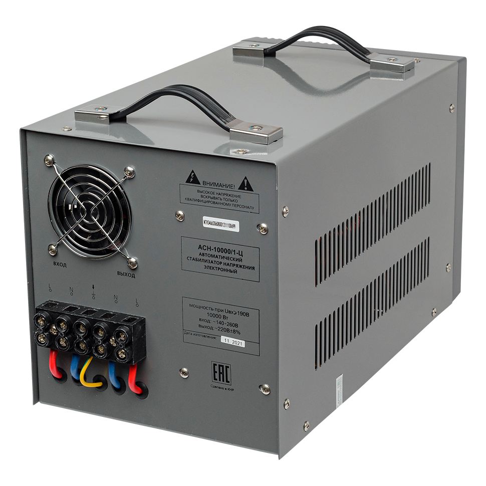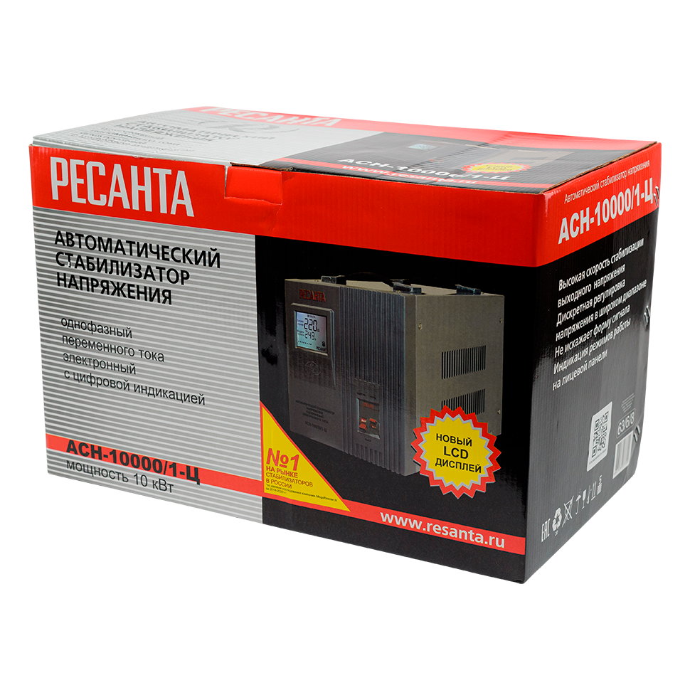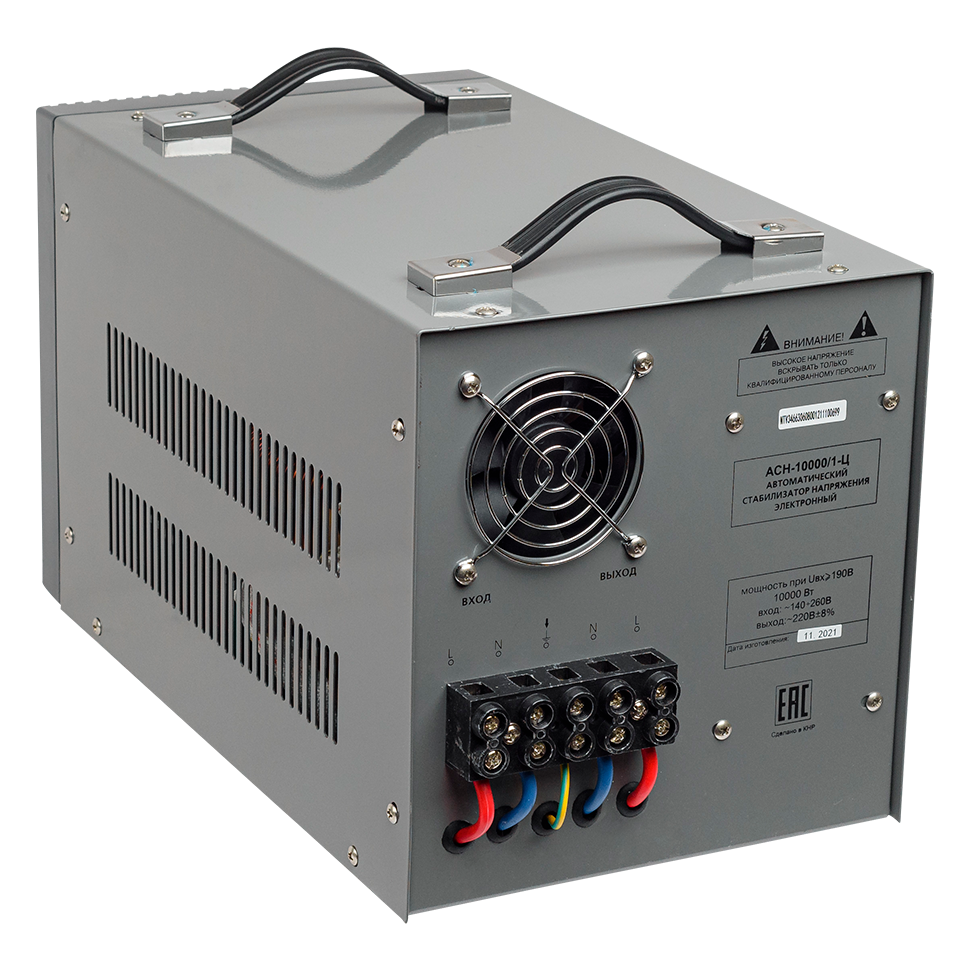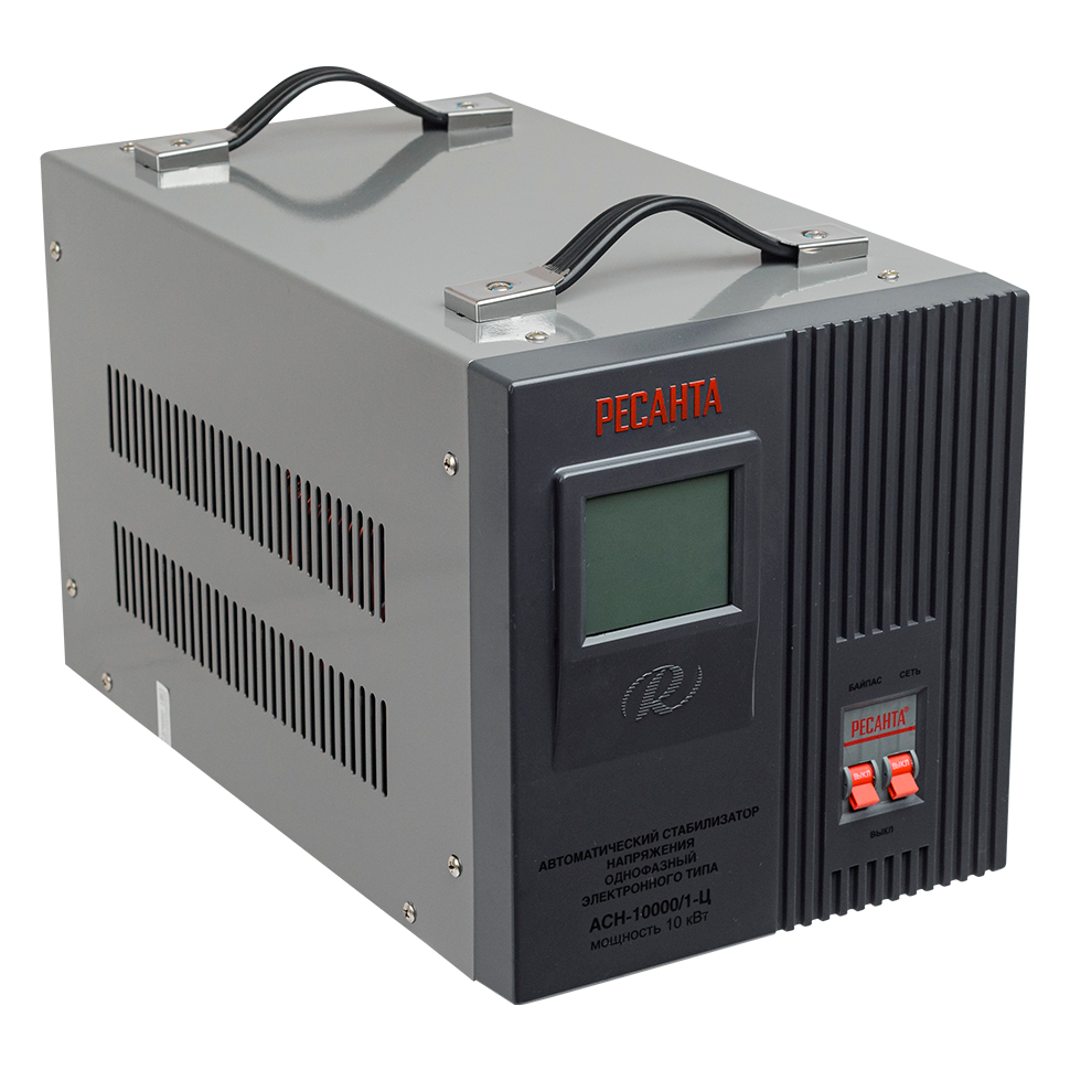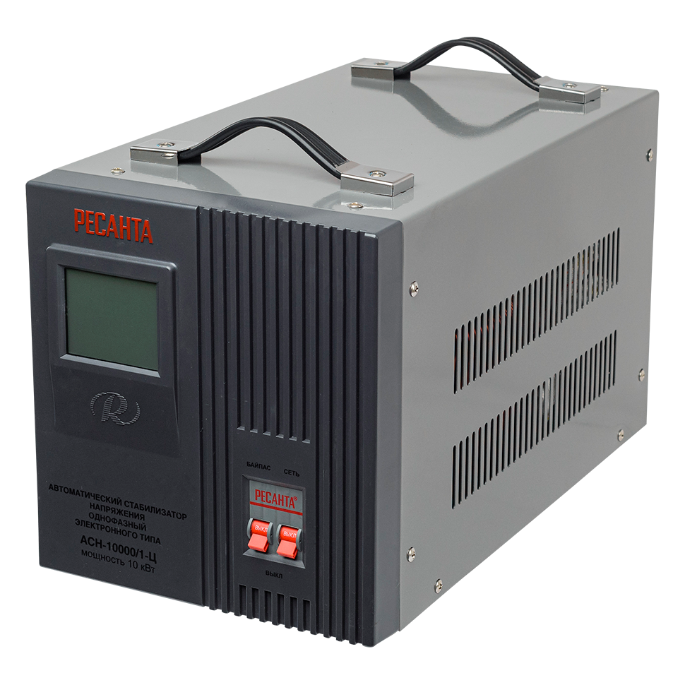 Стабилизатор напряжения Ресанта АСН-10000/1-Ц – это прибор, созданный для поддержания выходного напряжения в заданных границах (220±8%) при значительном колебании входного напряжения в диапазоне от 140 до 260 В. Обеспечивает стабильную и безопасную эксплуатацию электрических аппаратов суммарной мощностью до 10 кВт. Для выравнивания напряжения исходящего тока используется автотрансформатор с электронной коммутацией обмоток. Устройство имеет удобную панель управления с LCD дисплеем. Эргономичный, прочный корпус надёжно предохраняющий внутренние узлы прибора от механических повреждений. Стабилизатор напряжения улучшает качество подаваемой электроэнергии, устраняет скачки напряжения, защищает подключенные промышленные и бытовые устройства от выхода из строя из-за короткого замыкания.