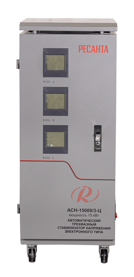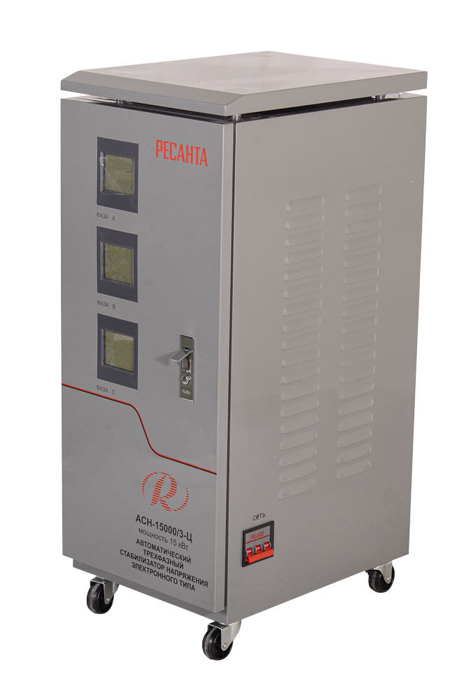 Электромеханический стабилизатор напряжения Ресанта АСН 15000/3-Ц предназначен для стабилизации напряжения в трехфазной электросети. Управляющий модуль реагирует на колебания параметров сети менее чем за 15 м/сек. Модель оптимальна для использования при стабильно пониженном или повышенном напряжении.