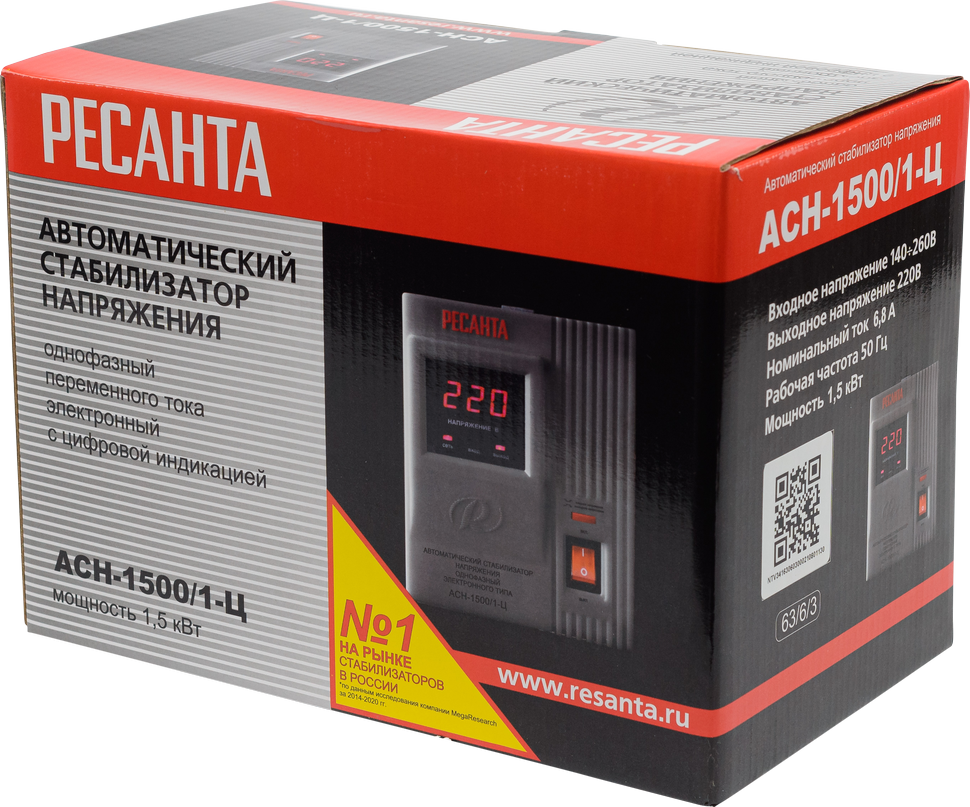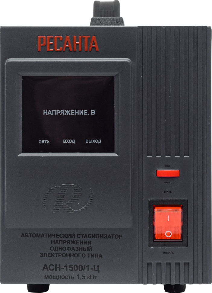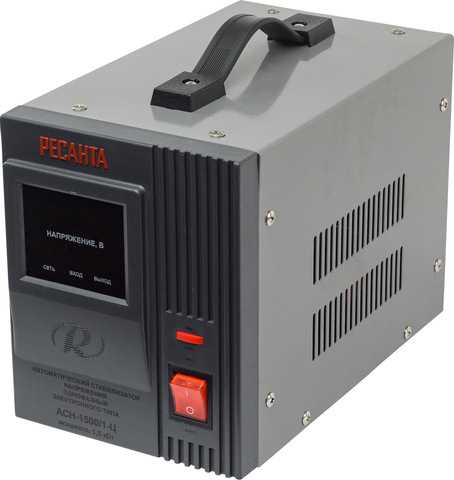 Стабилизатор напряжения Ресанта АСН-1500/1-Ц мощностью 1500 Вт, с воздушным охлаждением и LED-дисплеем обеспечит выравнивание выходного напряжения и надежную защиту бытовых электроприборов, промышленного оборудования от скачков напряжения и поломки.