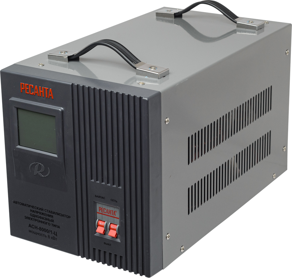 Стабилизатор напряжения Ресанта АСН-8000/1-Ц релейного типа поможет обеспечить стабильное напряжение в местности, характеризующейся его перепадами и скачками. Особенно это актуально в загородных домах, деревнях. Но не менее востребованы стабилизаторы и в промышленности. Надежная, проверенная временем система работы поможет обезопасить оборудование и бытовую технику от скачков напряжения, а также обеспечить их правильное функционирование.
