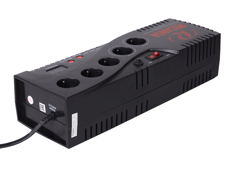 Стабилизатор напряжения выполнен в пластиковом корпусе и имеет автоматическую защиту от скачков напряжения и от перегрева при превышении мощности допустимой нагрузки. Реализована также функция задержки подачи напряжения на выходе прибора, что позволяет подключать оборудование, включение и отключение которого происходит с определёнными интервалами.