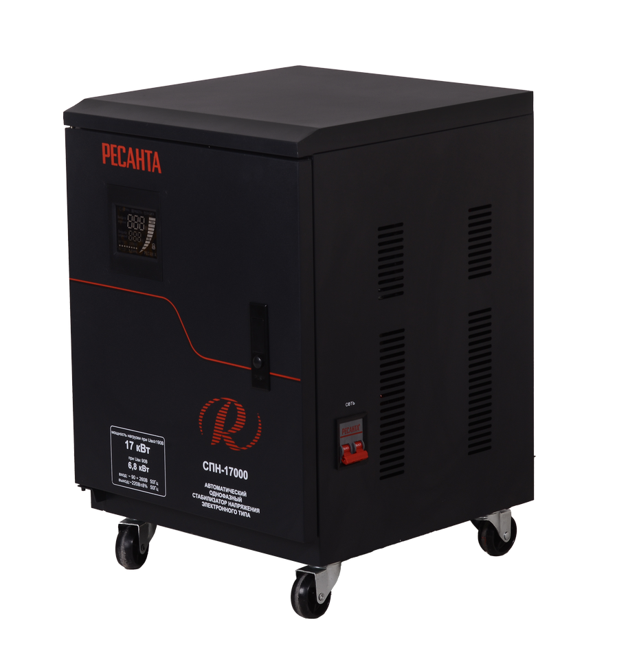 Стабилизатор напряжения Ресанта СПН-17000 используется для защиты электрических приборов от поломки в случае перепадов напряжения в сети, коротких замыканий, возникновения высоковольтных импульсов. Применим в частных домах, офисных помещениях, на торговых площадках и производствах для защиты электрического оборудования, цифровой техники и бытовых приборов. Компактные габариты позволяют разместить стабилизатор даже в ограниченном пространстве. Наличие поворотных колес обеспечивает удобство перемещения. Прочный металлический корпус защищает внутреннюю автоматику прибора от механических воздействий.