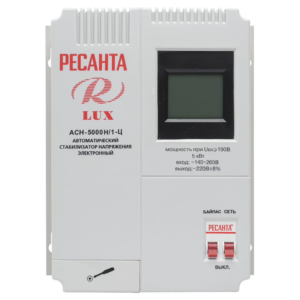 Стабилизатор напряжения Ресанта LUX АСН-5000Н/1Ц обеспечит подачу тока со стабильным напряжением на бытовые приборы в доме.
