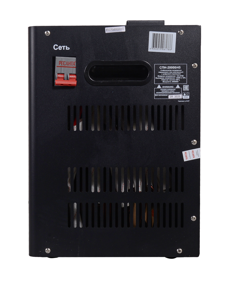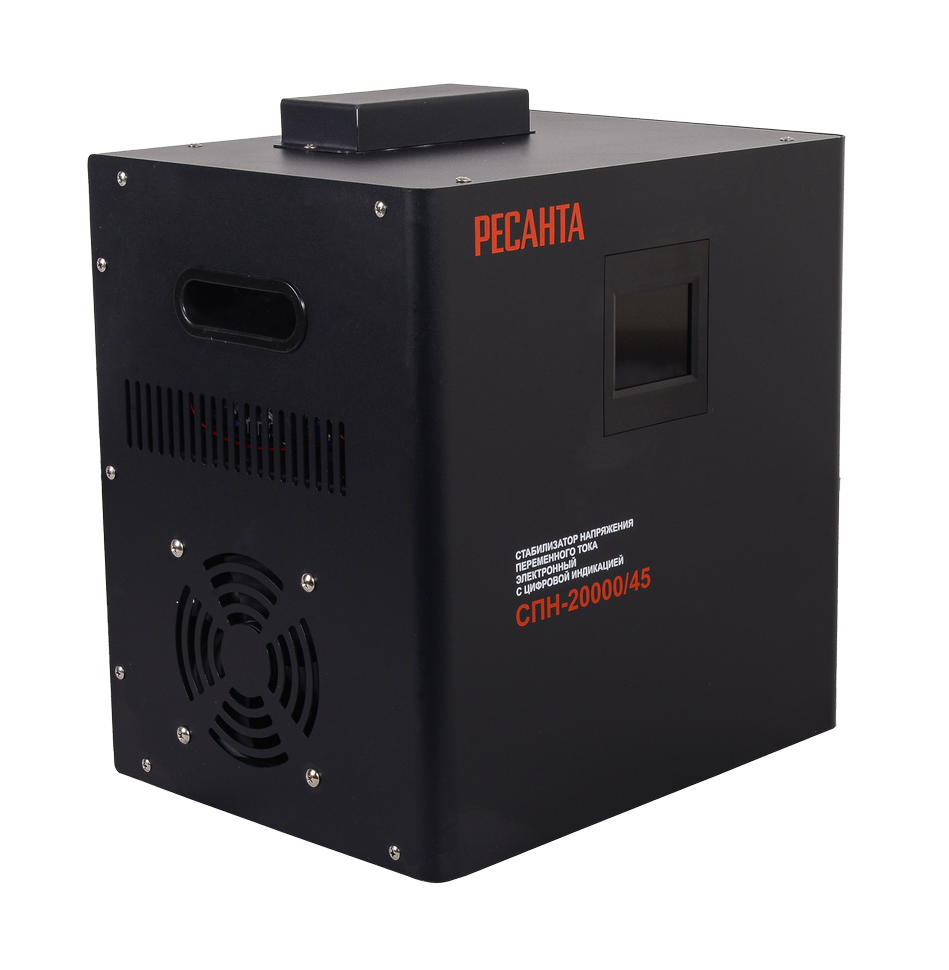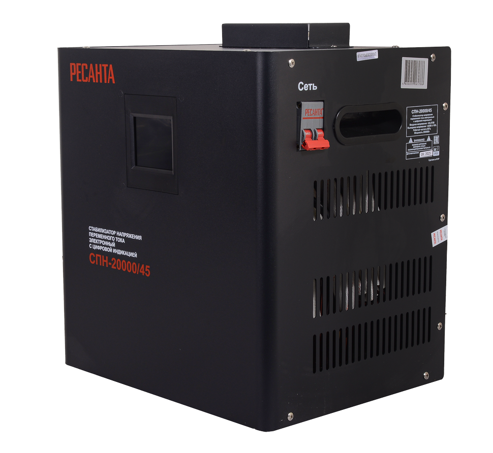 Стабилизатор Ресанта СПН-20000/45 повышает и стабилизирует напряжение даже при катастрофически низких входных 45 В, выдавая на выходе стабильные 220 В с чистой синусоидой для мощности до 20 000 Вт. Такие показатели позволяют запитать весь частный дом, коттедж, мастерскую или небольшое производство с мощным оборудованием.