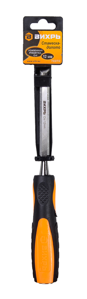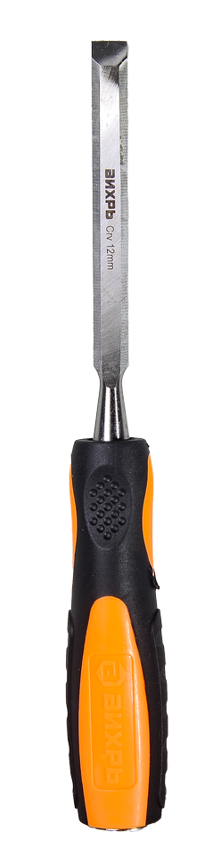 Стамеска-долото ВИХРЬ 12 мм - ручной инструмент, который используется для обработки древесины: выпиливания отверстий, обработки краев и резки канавок. Стамеска состоит из стержня из хромванадиевой стали (CrV) с заточенным лезвием шириной 12 мм и двухкомпонентной рукоятки.