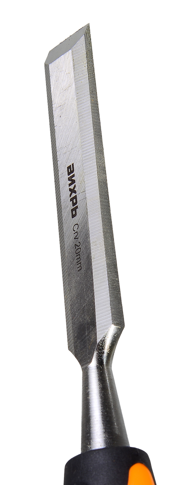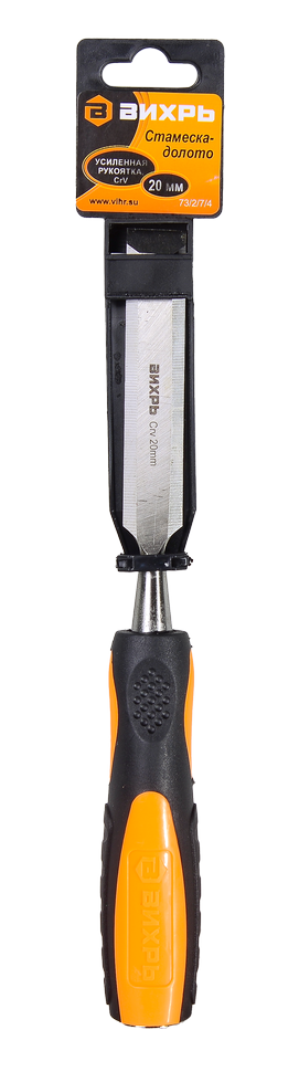 Стамеска-долото ВИХРЬ 20 мм - ручной инструмент, который используется для обработки древесины: выпиливания отверстий, обработки краев и резки канавок. Стамеска состоит из стержня из хромванадиевой стали (CrV) с заточенным лезвием шириной 20 мм и двухкомпонентной рукоятки.