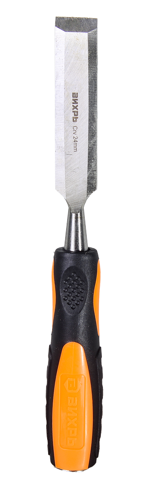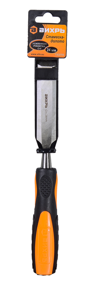Стамеска-долото ВИХРЬ 24 мм - ручной инструмент, который используется для обработки древесины: выпиливания отверстий, обработки краев и резки канавок. Стамеска состоит из стержня из хромванадиевой стали (CrV) с заточенным лезвием шириной 24 мм и двухкомпонентной рукоятки.