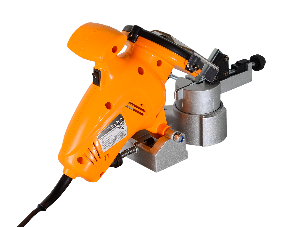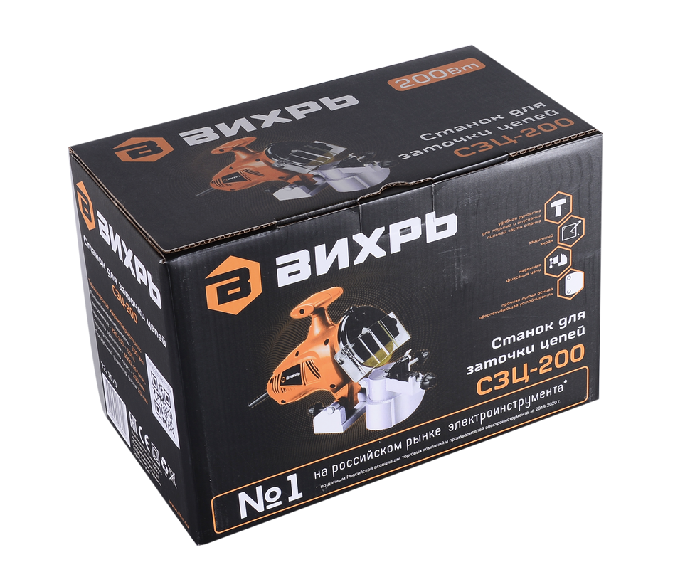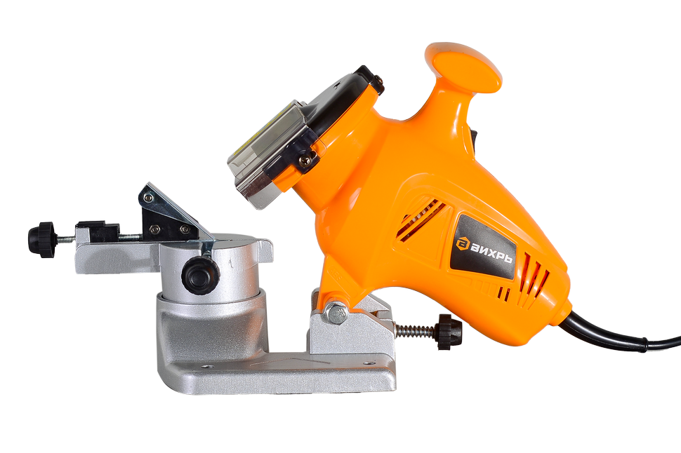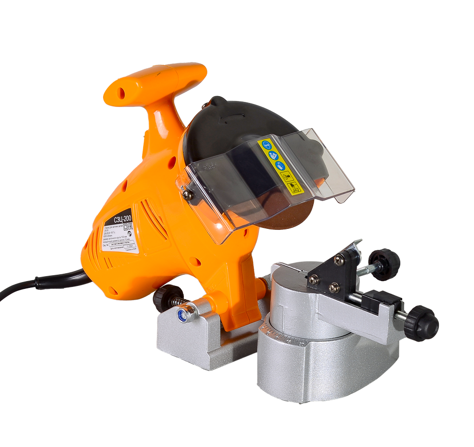 Станок для заточки цепей отличается продуманной конструкцией и компактными размерами, комплектуется эргономичной ручкой, которая существенно упрощает использование приспособления. Высокую производительность обеспечивает двигатель мощностью 200 Вт. Частота вращения составляет 6000 об/мин. Также модель оснащена защитным экраном для повышения безопасности во время работы. Он легко откидывается при необходимости. Корпус станка имеет вентиляционные отверстия, через которые отводится нагретый воздух, что предупреждает перегрев инструмента и его преждевременный выход из строя. Среди особенностей станка ВИХРЬ СЗЦ-200 стоит отметить наличие ограничителя глубины.