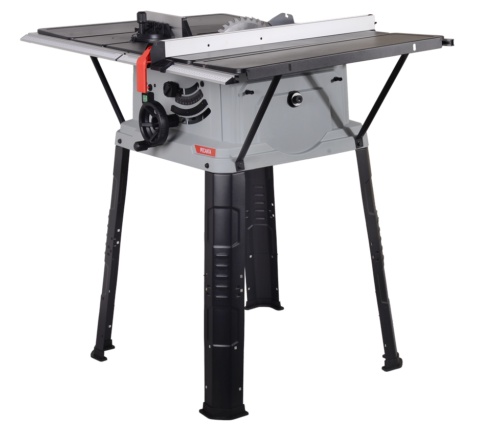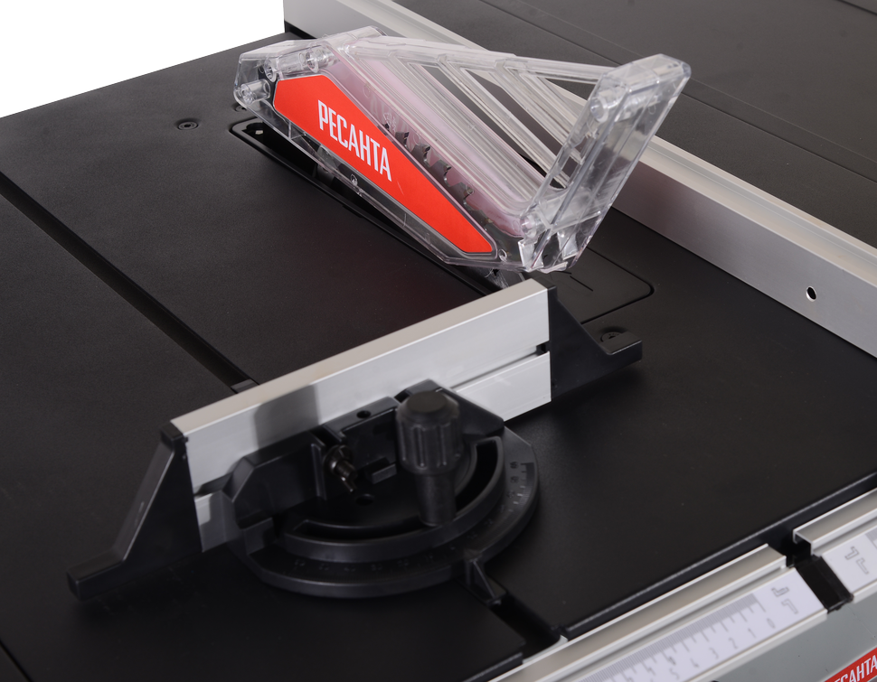 Универсальность использования достигается благодаря возможности наклона пильного диска в диапазоне от 0 до 45°. Большой размер рабочего стола (630 на 935 мм) позволяет комфортно работать с крупным заготовками.