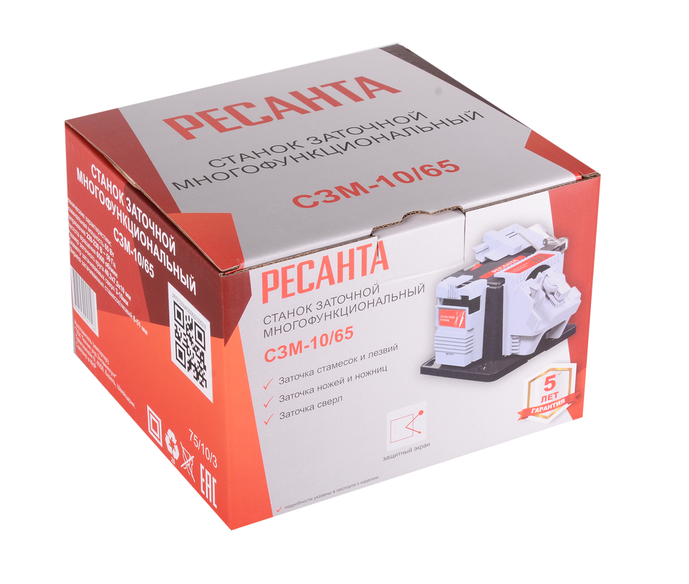 Ресанта СЗМ-10/65 – многофункциональное устройство, станок для заточки цепей, ножей, стамесок, сверл мощностью 65 Вт и частотой оборотов 6500 в мин.