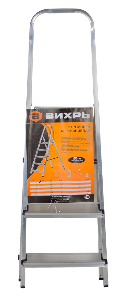 Стремянка алюминиевая ВИХРЬ СА 1х3 позволяет быстро и безопасно достигать высоких мест. Рабочая площадка находится на высоте 0,59 м.