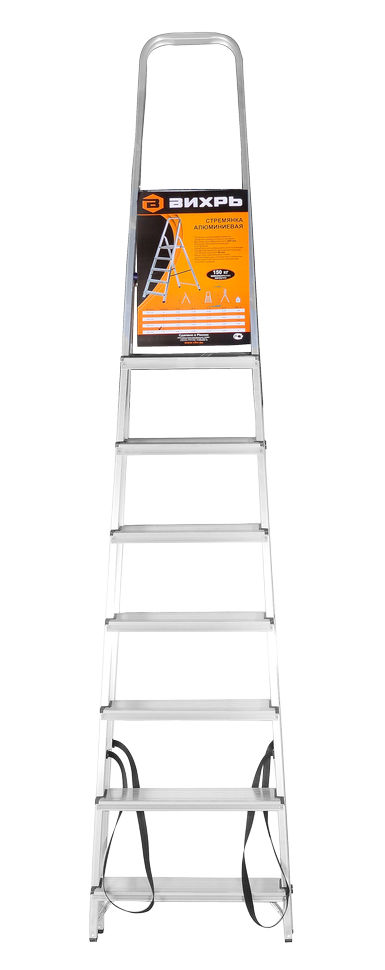 Стремянка алюминиевая ВИХРЬ СА 1х8 используется для выполнения различных работ на высоте. Она состоит из семи ступеней и площадки, выполненных из прочного алюминиевого сплава, который обеспечивает стойкость к коррозии и легкий вес - 5,6 кг.