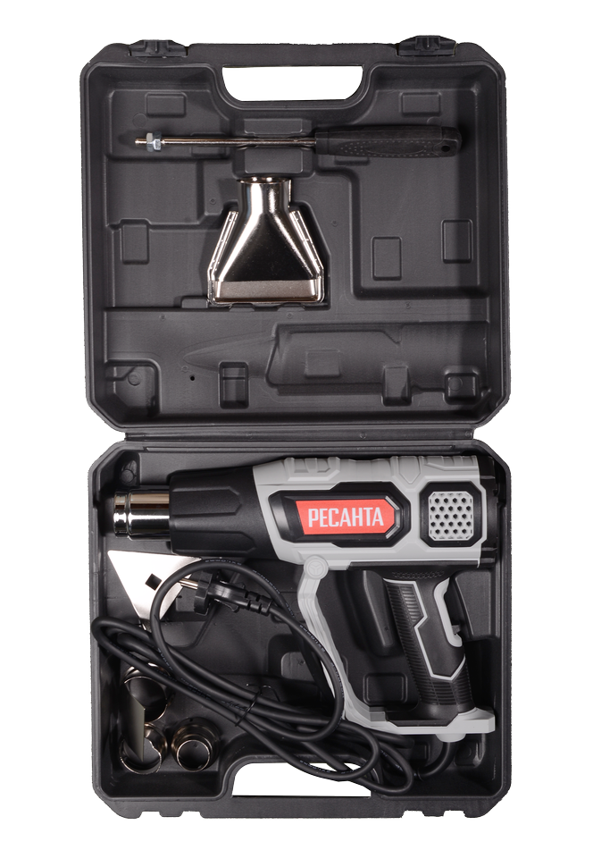 Термопистолет РЕСАНТА ФЭ-2000ЭКД применяется в быту и профессиональной деятельности. Вес модели 1 кг, это облегчает процесс длительной работы. Закрытая прорезиненная рукоятка препятствует попаданию на руку горячего воздуха и гарантирует безопасность использования. Комплект из 4 насадок позволяет осуществлять различные виды работ. Прочный пластиковый кейс удобен для хранения и перемещения инструмента.