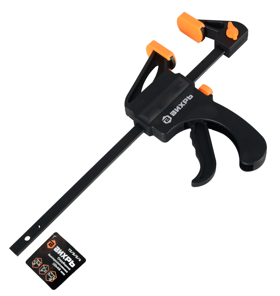 Струбцина быстрозажимная Вихрь 150х45 мм - устройство для фиксации деталей во время работы с ними. Струбцина оснащена механизмом быстрого зажима, который позволяет легко фиксировать деталь. Рифлёные эластичные губки не оставят повреждений при фиксации.