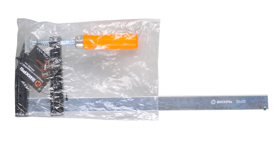 Струбцина F-образная 300х80 мм Вихрь поможет надёжно прижать детали друг к другу при выполнении различных монтажных и ремонтных работ. Специальная F-образная форма струбцины позволяет легко и удобно закреплять детали различных форм и размеров, обеспечивая надёжное и стабильное крепление.