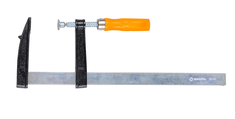 Струбцина Вихрь 300х80 мм идеально подходит для использования в деревообработке, металлообработке, строительстве, а также других видов работ, где требуется надёжное закрепление деталей.