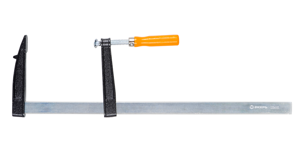 Струбцина Вихрь 500х120 мм идеально подходит для использования в деревообработке, металлообработке, строительстве, а также других видов работ, где требуется надёжное закрепление деталей.