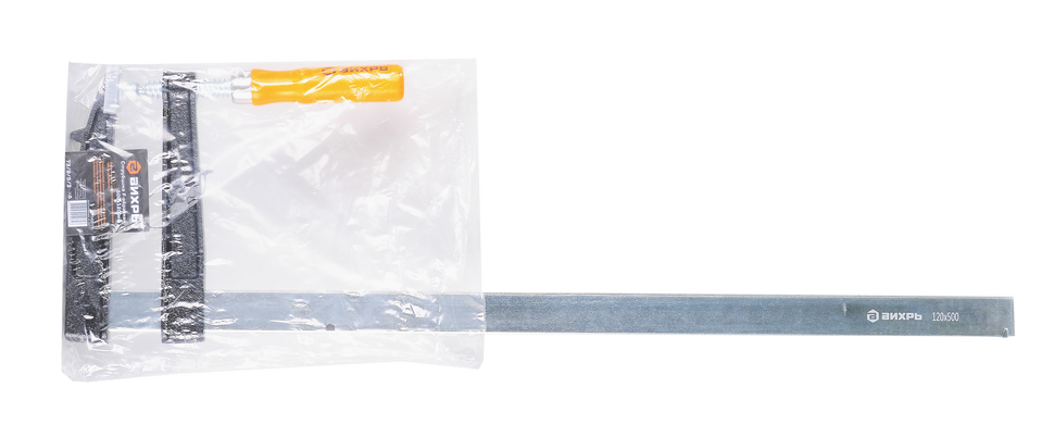 Струбцина F-образная 500х120 мм Вихрь поможет надёжно прижать детали друг к другу при выполнении различных монтажных и ремонтных работ. Специальная F-образная форма струбцины позволяет легко и удобно закреплять детали различных форм и размеров, обеспечивая надёжное и стабильное крепление.